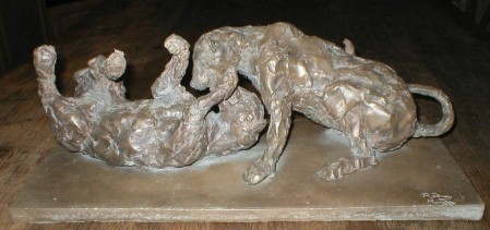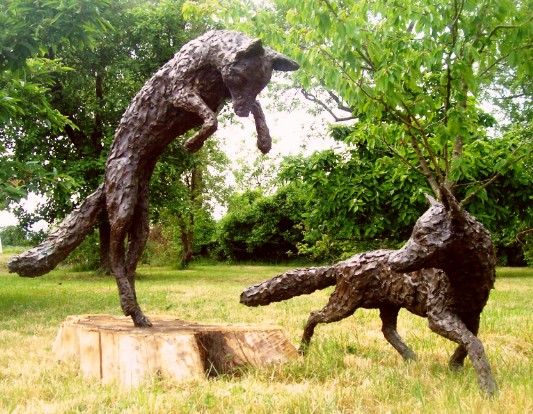 Mon travail d'animalier a commencé lorsque j'exposais au Chelsea Flower Show, où l'on m'a souvent demandé de réaliser des portraits d'animaux de compagnie. Jusque-là, la plupart de mon travail portait sur la forme humaine. . Les animaux domestiques et sauvages ont continué à être une source de commandes de sculpture, et en 2005 j'ai remporté la médaille d'or de la sculpture au 11e Salon d'Art du Colombier à Saint-Arnoult-en-Yvelines, près de Paris, pour mon renard, "Interrompu". En 2006, au 12e Salon, "Leaping Fox" a reçu la médaille de la sculpture la plus appréciée des enfants.