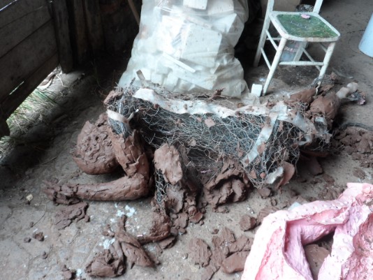 Le travail sur la figure grandeur nature a commencé avec une armature d'acier, de tige d'aluminium et de grillage, comme le montre la galerie suivante.La galerie suivante montre de l'argile appliquée sur l'armaturerésultant en la figure d'argile finale.