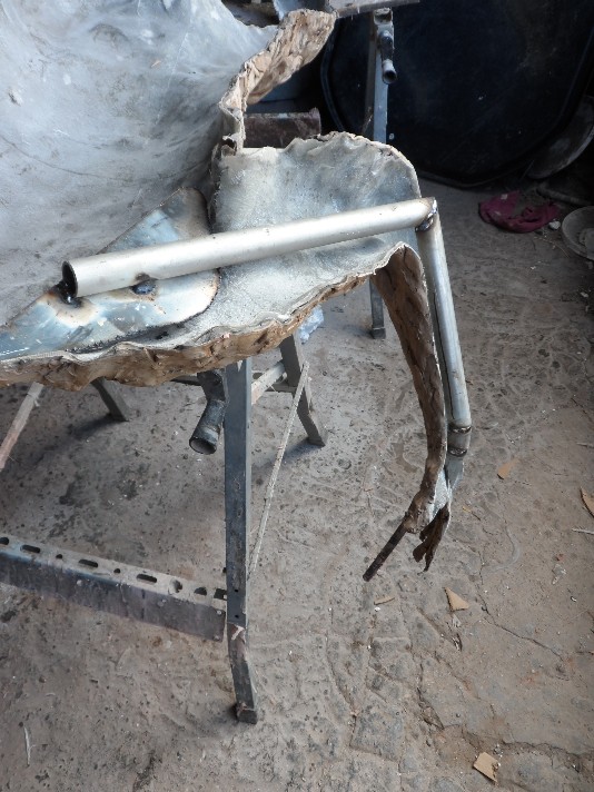 La galerie suivante montre le caoutchouc durci et les supports en fibre de verre. Après que le caoutchouc ait été localisé dans les supports. La résine de bronze (un mélange 50/50 en volume de poudre de bronze et de résine polyester) a été versée dans chaque section, suivie d'une couche de support utilisant une autre charge.La construction d'une sculpture en résine de bronze est réalisée à peu près de la même manière que dans la production de bateaux en fibre de verre ou decarrosseries de voitures, elle est donc structurellement solide. Dans ce cas cependant, en raison des contraintes supplémentaires impliquées dans la création d'une arche dans un endroit exposé, j'ai fait renforcer tous les points de contrainte avec une plaque et un tube en acier inoxydable, comme illustré dans cette image de l'intérieur d'un bras et d'une épaule.